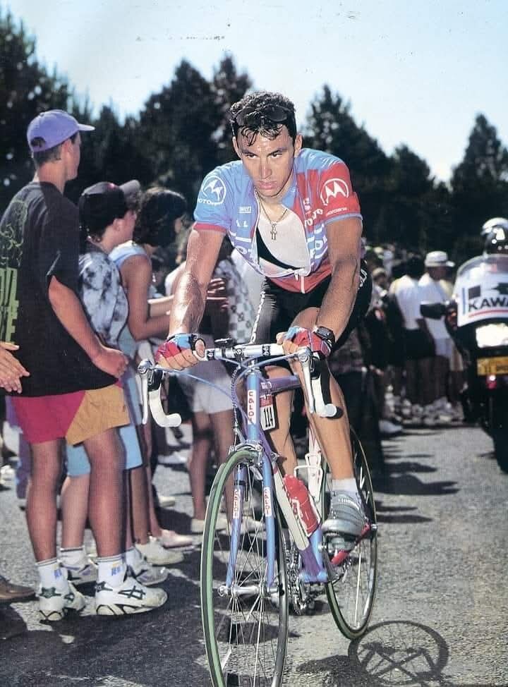 Fabio Casartelli, avant le drame. Tour de France 1995. L'Italien de 24 ans est Champion Olympique. A abandonné en 1994 et vient pour la revanche. Il heurte malheureusement un parapet en béton en chutant dans la descente du col de Portet d'Aspet. Sa tête explose. Sans casque ou avec, éternel débat. Lui n'en avait pas. Sa boîte crânienne est renfoncée et il meurt dans une mare de sang. Avec Annalisa, il avait eu deux mois plus tôt un fils, Marco.