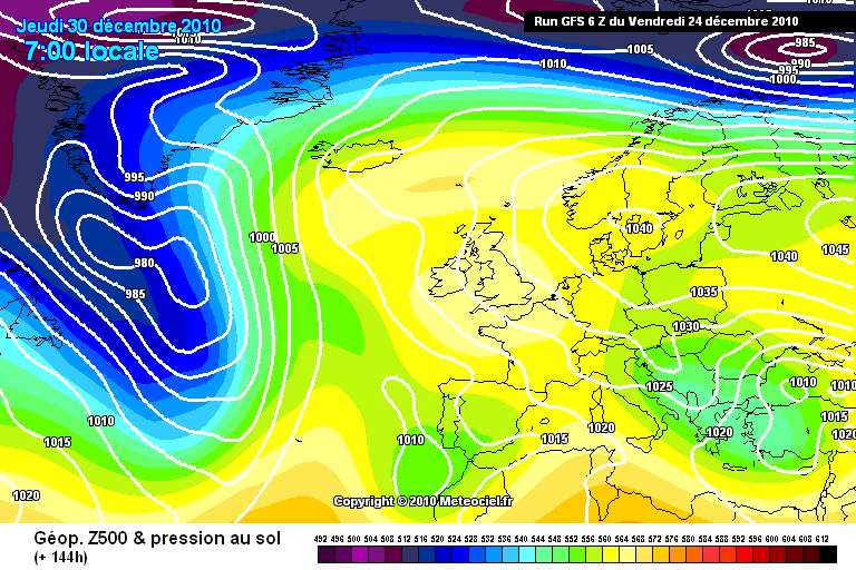Tout est en fait lié au positionnement et aux caractéristiques de cet anticyclone. S'il se place plein sur nous: le temps reste sec et froid grâce aux inversions de subsidence. S'il se positionne au nord de nos régions, il aspire de l'air continental vers la Belgique. S'il reste à l'est, avec des isobares serrés, c'est 5°C à 850 hPa ou plus qui nous attendent et une fonte rapide de l'épaisse couche de neige. Dans ce même cas de figure, mais si les isobares restent espacés, le temps resterait assez calme pour maintenir une inversion de subsidence sur la Belgique jusqu'en 2011.