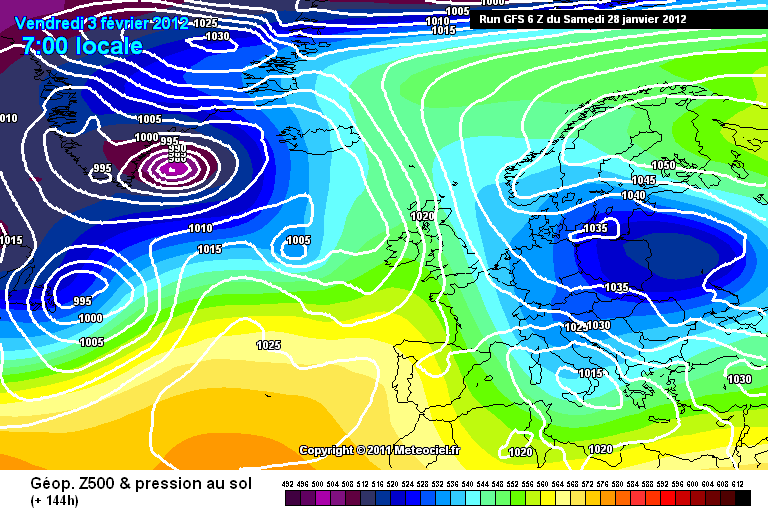 D'après ce run le froid reculerait légèrement en fin de semaine à cause d'une perturbation atlantique (attention il ne ferait tout de même pas plus de -3 ou -4°C l'après midi en plaine :innocent: ) avant de nous retomber franchement sur la figure deux jours plus tard!