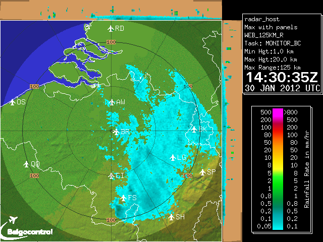 J'espère que la zone neigeuse viendra stationner dans notre secteur également, ce qui (si elle ne désagrège pas en cours de route) semblerait envisageable d'ici ce soir: cf. les différents radars semblant illustrer un pivotement de la zone vers le Sud-Ouest de la Belgique ... :shifty: