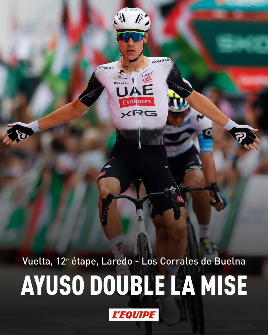 jeannot 0 Posté(e) 2 septembre Tour d'Espagne  Vuelta. Jay Vine remporte la 10e étape, Jonas Vingegaard récupère le maillot rouge L'Australien Jay Vine s'adjuge une 2e victoire sur cette Vuelta 2025, en remportant en solitaire la 10e étape entre le parc naturel de Sendaviva et El Ferrial Larra Belagua (175,3 km), ce mardi 2 septembre. Jonas Vingegaard récupère le maillot rouge de leader aux dépens de Torstein Træen. Partager ce message Lien à poster Partager sur d’autres sites
