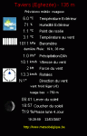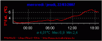 maxous 0 Posté(e) 22 mars 2007 Bonsoir à tous, Dicton du mois : Poussière de mars, poussière d'or. Voici les observations de fin d’après midi T° sous abri: 4,9° C . T° dans le sol (100mm) : 4,2° C ; 80% d’humidité relative; 1010hPa, en baisse puis stable, Vent faible de secteur N.O, (0 Bft), sans rafales; Ciel peu nuageux: 2/8octas , Précipitations sur les dernières 24 h : 5,0mm, un peu de tout ; 0h00 d’ ensoleillement, Luminosité : 0, 350Klux Actuellement : sec et ciel peu nuageux alerte hivernale: neige Bonne soirée à toutes et tous Partager ce message Lien à poster Partager sur d’autres sites