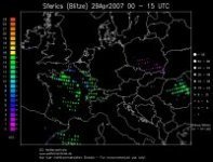 Poussin 0 Posté(e) 29 avril 2007 (modifié) Elles semblent se diriger vers l'Entre Sambre et Meuse et comme celle d'hier a réussi à se déplacer jusque Mons, il est probable qu'aujourd'hui, les mêmes régions soient exposés aux averses. La situation n'est pas tout à fait la même qu'hier et, comme on le voit dans l'image ci-dessous, les orages se situent plus au sud-est qu'hier. Je doute fort que les cellules arrivent jusqu'à Mons cette fois-ci (peut-être Charleroi, Namur ou Liège et encore ce n'est franchement pas certain).... A Liège comme partout sur le sillon Sambre et Meuse, on voit les enclumes des orages ardennais qui s'étendent de plus en plus vers le nord. Ne pas trop espérer non plus: les enclumes s'étendent toujours très fort à un stade avancé de l'orage, mais la cellule orageuse elle-même peut ne pas bouger du tout, peut "mourir" sur place ou en tout cas progresser moins loin que ce que l'étallement de l'enclume pourrait faire croire. Oui, je ne voulais pas dire que cela arriverait jusqu'à Mons mais que les mêmes régions (l'entre sambre et Meuse) pourraient probablement être touchées si on suit le fait que les averses d'hier se sont développées tout près de l'entre sambre et meuse. Si on suit une petite logique, on peut espérer que les cellules effectuent la même distance pour arroser l'entre sambre et meuse. Au vu des radars, il est clair qu'il faudra beaucoup de chance pour que ces cellules résistent jusque Mons où d'après moi, il ne devrait pas pleuvoir. Modifié 29 avril 2007 par Poussin Partager ce message Lien à poster Partager sur d’autres sites