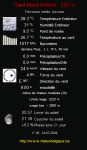maxous 0 Posté(e) 24 juillet 2008 Bonjour à toutes et à tous, Jeudi 24 juillet, 205e jour de l’année, il en reste 160 Phases de lune : D.Q. le 25, N.L. le 1er aout Nous fêtons : Christine Dicton(s) du jour : A la Sainte-Christine, coupe le blé plie l'échine Voici les observations de ce matin à (6h 25): Température sous abri : 8,5 °C humidité relative: 88% (7,52 l/m3) pression: 1022 hPa, stable T° au vent: 8,5 °C point de rosée: 6,6°C vent de secteur N-E. (60 °) faible, 0 Bft ; 0,0 km/h sans rafale(s) état du ciel : serein nébulosité : 0/8, visibilité bonne, nuages bas : 300 m ensoleillement : 0h00 luminosité : 0,0 Klux Température moyenne des dernières 24 heures : T° min. : 8,5° à 6 h21 T° max. : 26,4°C à 17h06 T° moy. : 17,4°C Précipitations sur les dernières 24 h: 0,0mm, sans Dernières précipitations : 2 j,6 h, 15 min, Cumul mensuel des précipitations : 76,0 mm, 12 jour(s) de précipitations Actuellement : temps sec sous un ciel serein Une bonne journée à vous Partager ce message Lien à poster Partager sur d’autres sites